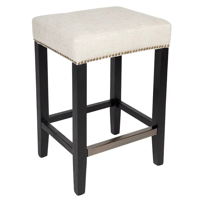 This luxury kitchen stool is constructed from an elegantly tapered solid birch frame in a rich black painted finish. Refined details like the brushed bronze studs and brass finished footrest add subtle glamour while the pure linen upholstered seat in a gorgeous natural texture with tufted detailing adds classic charm. For added comfort, the Canyon black kitchen stool features a high-density, foam-filled cushioned seat bringing form, function and elegance to your kitchen.